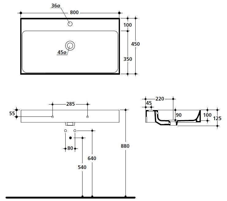 Раковина для ванної Kerasan Cento підвісна 80х45 см, особливості: