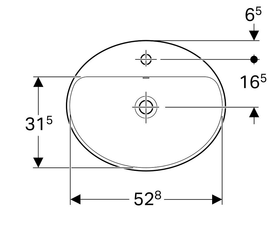 Раковина для ванної кімнати Geberit VariForm з полицею для отвори під змішувач овальна білий 500.721.01.2