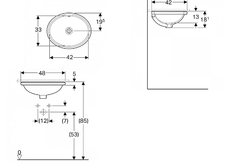 1) Раковина для ванної кімнати Geberit VariForm з отвором переливу овальна білий