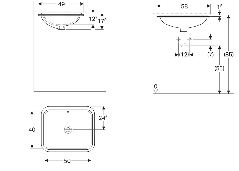 1) Раковина для ванної кімнати Geberit VariForm 50х40 см з отвором переливу прямоуголь ная білий