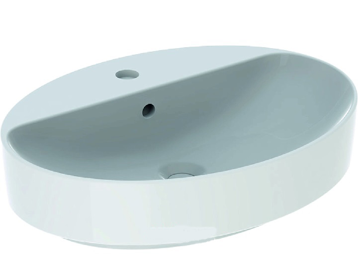 1) Раковина для ванної кімнати Geberit VariForm 60х45 см з полицею для отвори під змішувач з перелив м овальна білий