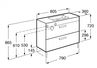 1) Раковина для ванної кімнати Roca Debba з установкою на тумбу 800х360 мм кераміка білий