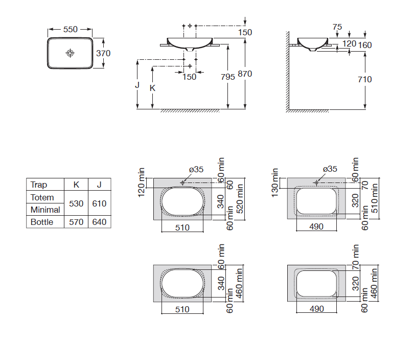 Представлена тут прямокутна, накладна керамічна раковина A327534000 серії Inspira Square має габаритні розміри 16 x 55 x 37 см, поставляється без переливного отвори і призначена для монтажу з окремостоячим змішувачем (купується окремо).