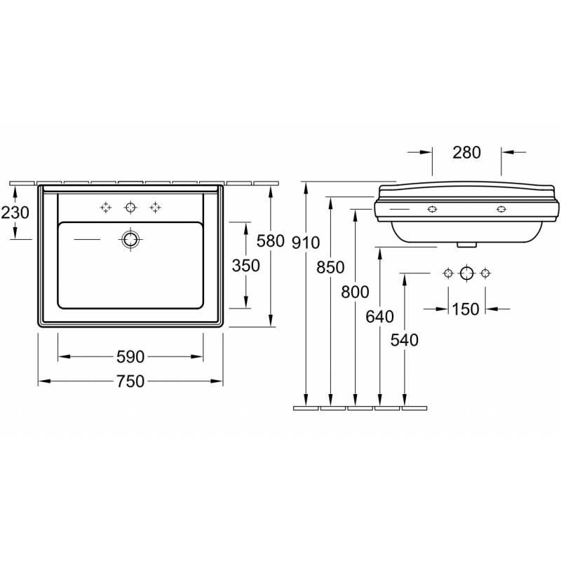 1) Раковина для ванної кімнати Villeroy & Boch Hommage подве ная 750х580 мм яскраво-білий CeramicPlus