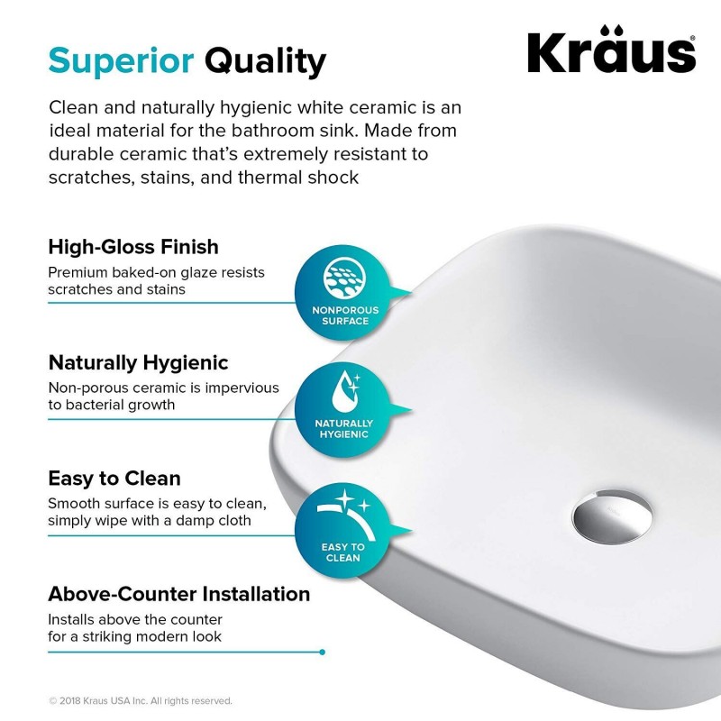 Поспішайте купити Раковина для ванної Kraus Elavo накладна 46х41 см кераміка білий KCV-127 за акційною ціною.