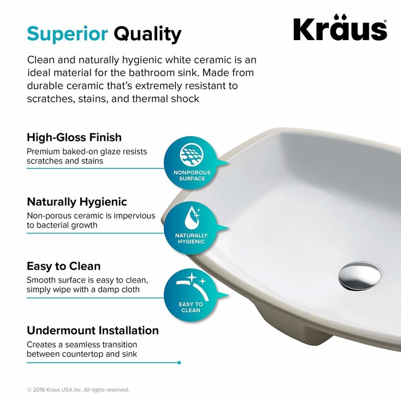 Серія Elavo ™ включає в себе керамічні раковини, які підходять для будь-якого інтер'єру, з можливістю використовувати різних типів установки. Моделі для установки на поверхню стільницізабезпечують привабливий зовнішній вигляд, ідеально підходять для модернізації та ремоделювання інтер'єру ванної кімнати, чудово доповнюють сучасний інтер'єр. Елегантний керамічний умивальник Kraus KCU-261 ELAVO виглядає, скоріше, як частина декору, ніж звичний побутовий предмет. KCU-261 ELAVO - це чотирикутна керамічна раковина з трьома отворами для переливу і додаткової глибиною для попередження розбризкування води. Монтується під стільницю