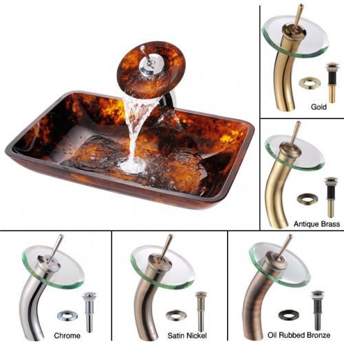 Прямокутна раковина внесе елемент розкоші і стилю в будь-яку стандартну ванну кімнату. Раковина нагадує красиву осінь, дезливаються відтінки коричневого з тонкими відтінками золота. Раковина виготовлена з гартованого скла товщиною 15 мм і має тривалий термін служби.