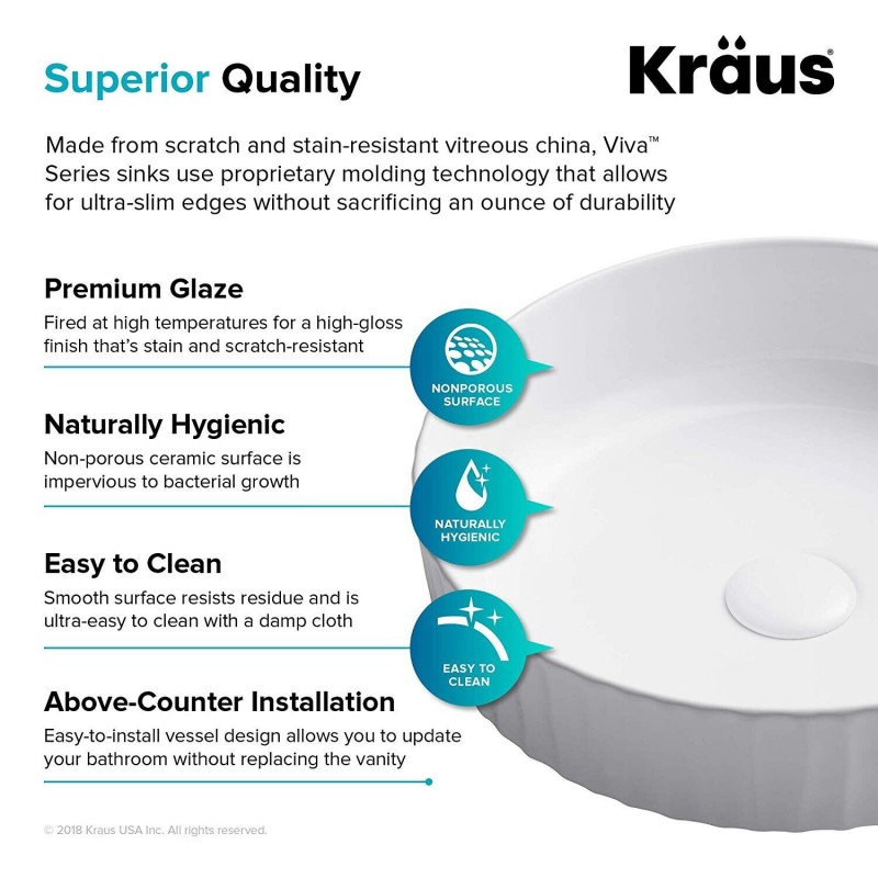 Раковина для ванної Kraus Viva Ø40 см кераміка глянсовий білий KCV-201GWH