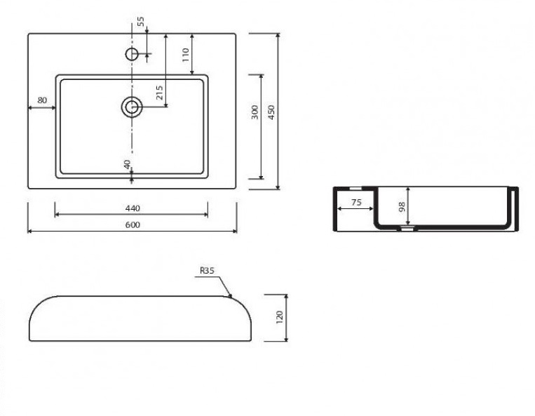 Раковина для ванної Marmorin Duna 60х45 см литий камінь білий 190 060 020 xx x