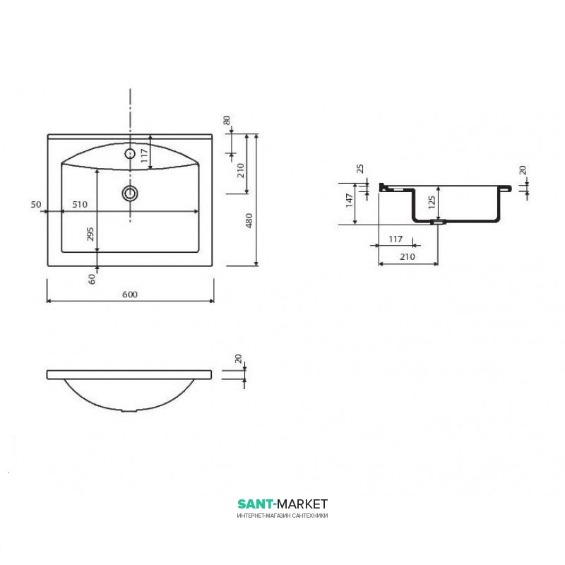 Раковина для ванної на тумбу Marmorin кллекція Larissa біла 300 060 022 xx x