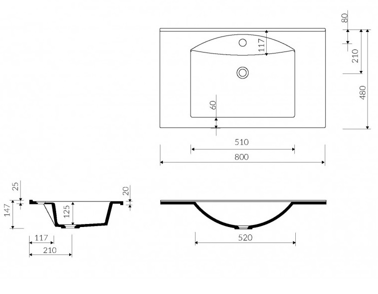 Раковина для ванної Marmorin Larissa 80х48 см литий камінь білий 800 біла 300 080 020 xx x