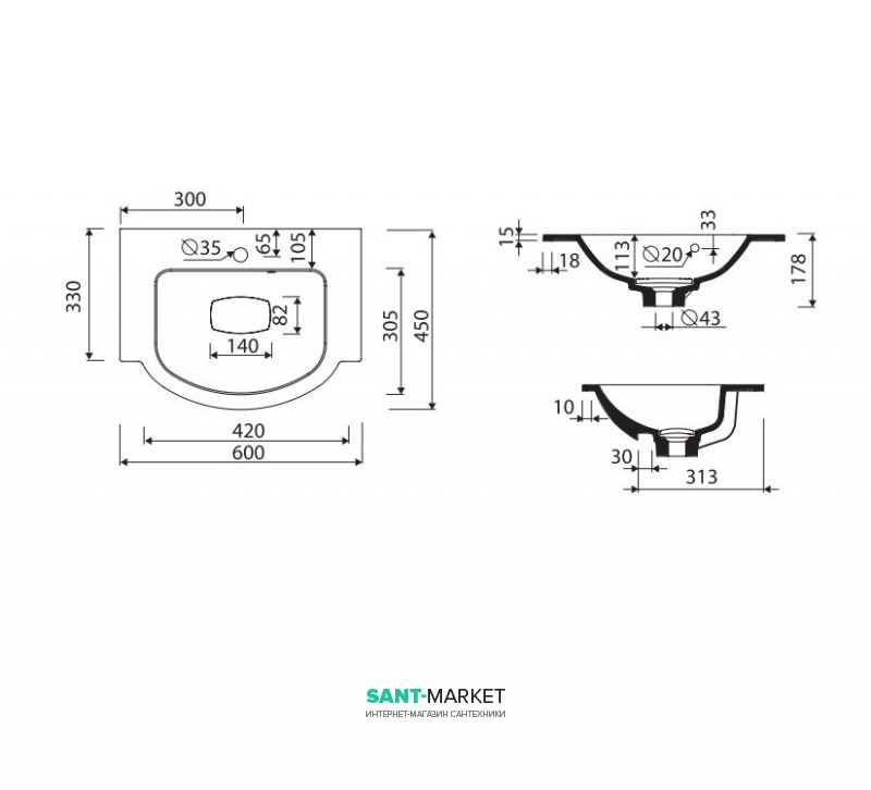 Раковина для ванної на тумбу Marmorin Emma біла 639 060 0xx xx x