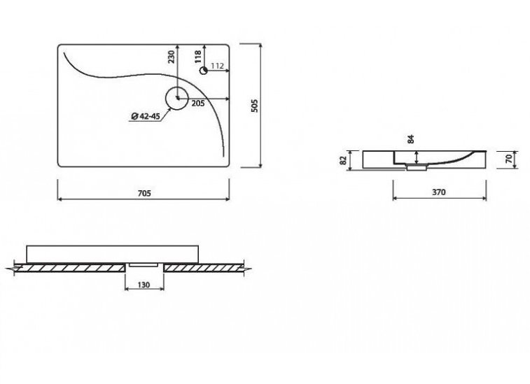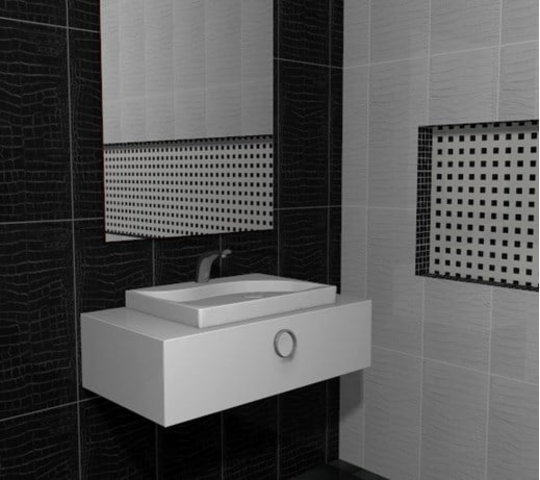 Раковина для ванної Marmorin Tatoo 70,5х50,4 см з чорною плиткою литий камінь білий 112 070 020 xx x