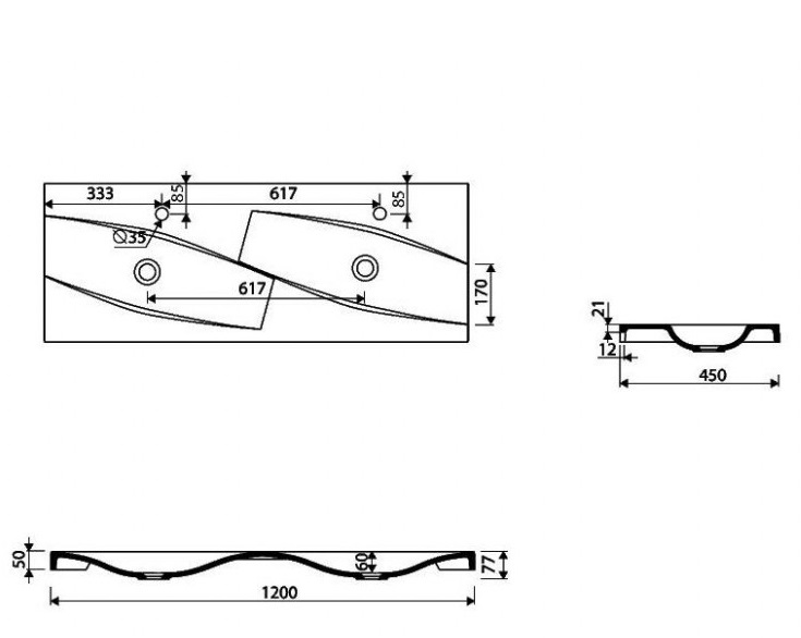 Раковина для ванної Marmorin Noel Duet 120х45 см подвійна литий камінь білий