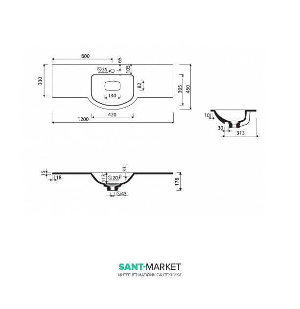 Раковина для ванної на тумбу умивальник-стільниця Marmorin Emma 120 біла 639 120 0xx xx x