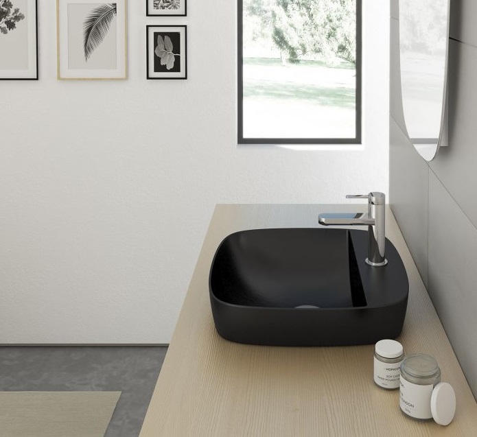 1) Раковин а для ванною накладна Catalano Colori 42х42 кераміка колір чорний поверхню сатин