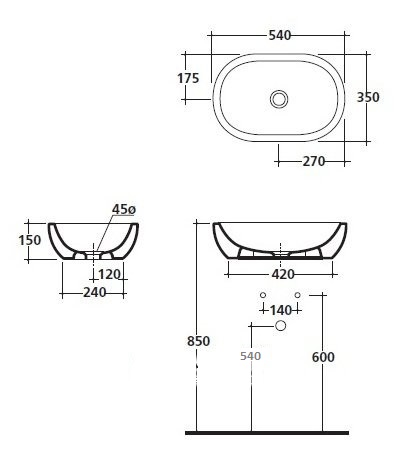 Раковина для ванної Galassia Midas накладна овальна без отвору перелива білий 5233