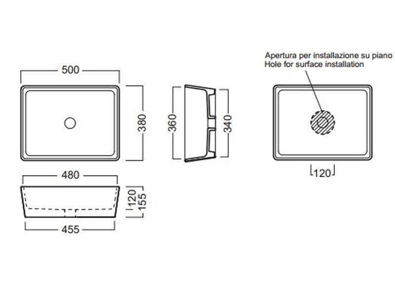 1) Раковина для ванної накладна Hatria HAPPY HOUR 50х38 см