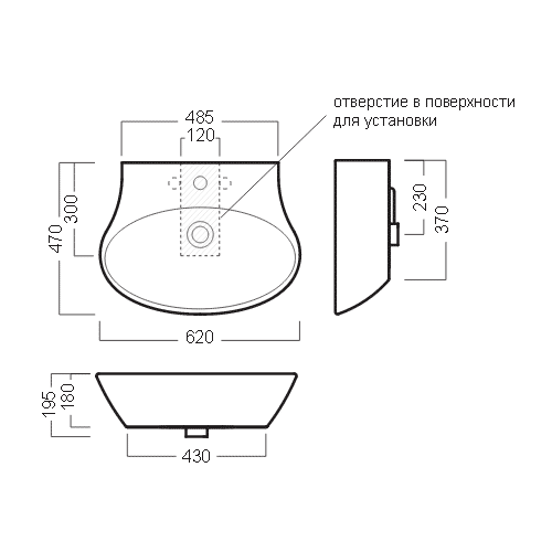 Раковина накладна HATRIA NIDO YXEM01, розмір 62х47 см, колір білий. Раковина з одним центральним отвором під змішувач, з отвором переливу.