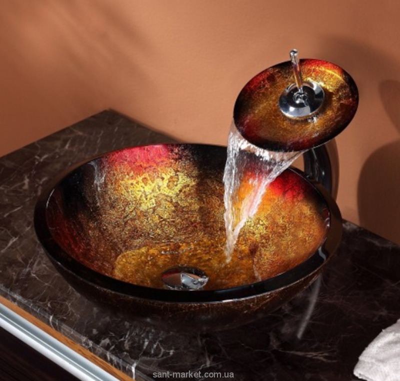 Раковина для ванної накладна Kraus чорно-червона GV-680-19mm