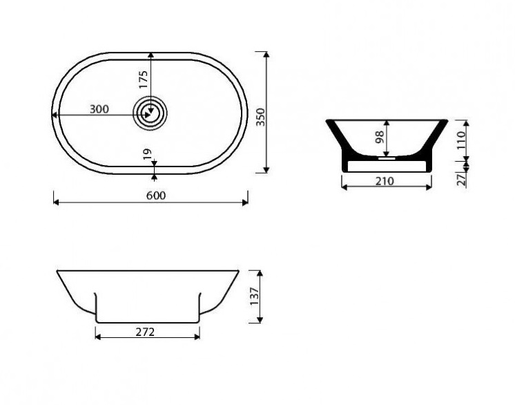 Раковина для ванної Marmorin Liva 60х35 см литий камінь білий 556 060 020 xx x
