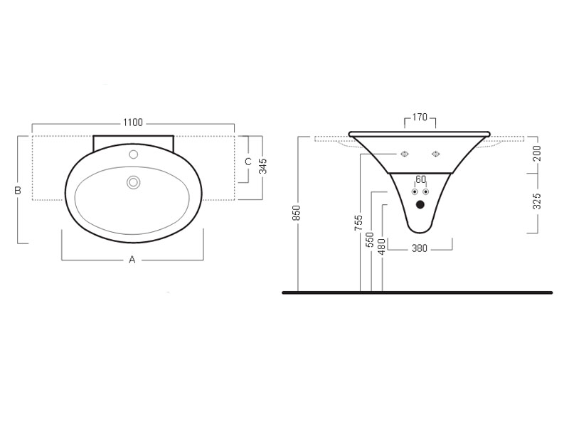 Раковина підвісна або накладна HATRIA SCULTURE YR3801, азмер 110х60 см, колір білий, з отвором переливу, один отвір підзмішувач готове. Монтаж з колоною (арт. YR3901), підвісний півколоною (арт. YR4001), так і вільно без постаментів або на стільницю. У комплекті з кріпильними елементами. Колони для раковини в комплект поставки не входять.