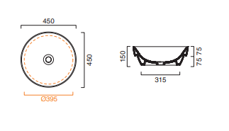 - Раковина може накладатися на стільницю або частково вбудовуватися в стільницю (на 75 мм.)