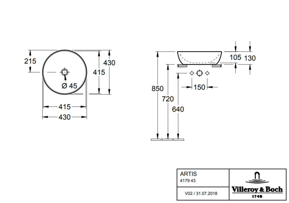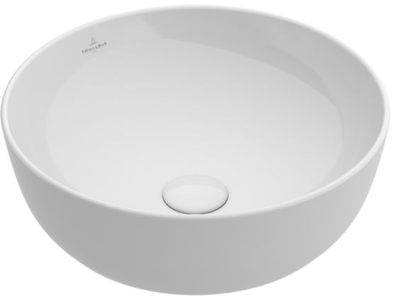 Кругла накладна раковина Villeroy&Boch колекція Artis. Раковина без отворів під змішувач без отвору переливу. Раковина круглої форми встановлюється на стільницю, рекомендується використовувати з такими раковинами високі змішувачі або вбудовані змішувачі зі стіни. Цю раковину можна використовувати з меблями Legato.