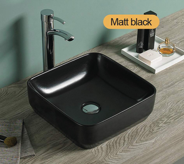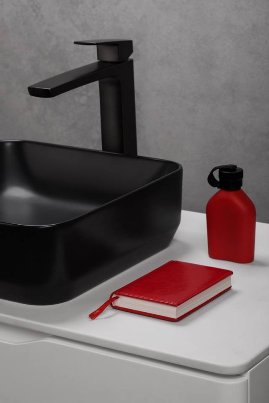 1) Раковина для ванної накладна Volle 36х36 см кераміка чорний матовий