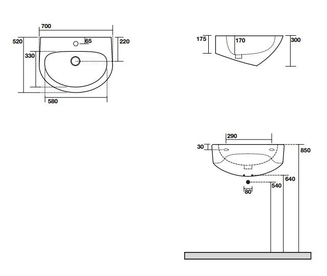 - розміри раковини: 700х520х300 мм