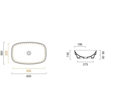 Раковина для ванної настільна або полувстраіваемие Catalano Green LUX 60х38 см без відп. під змішувач сіра матова 160AGRLXGS