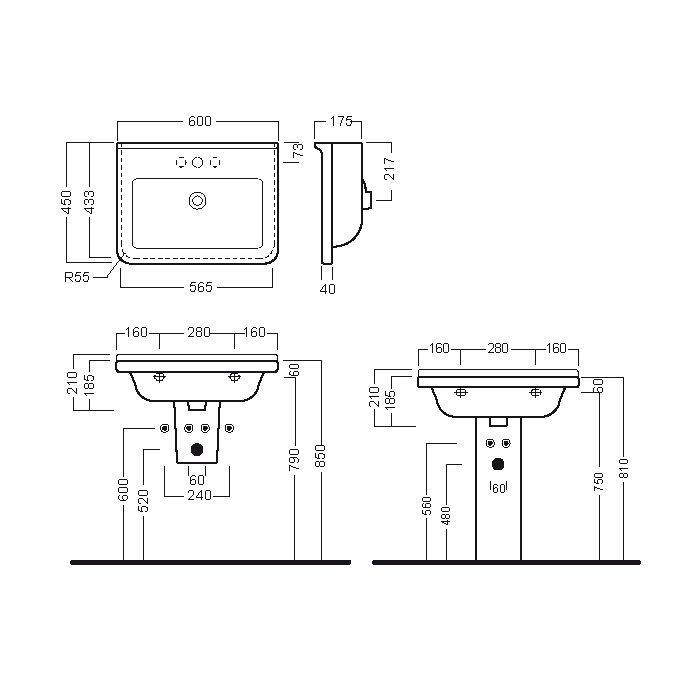 1) Раковина для ванної підвісна Hatria Erika Pro 60х45 см білий