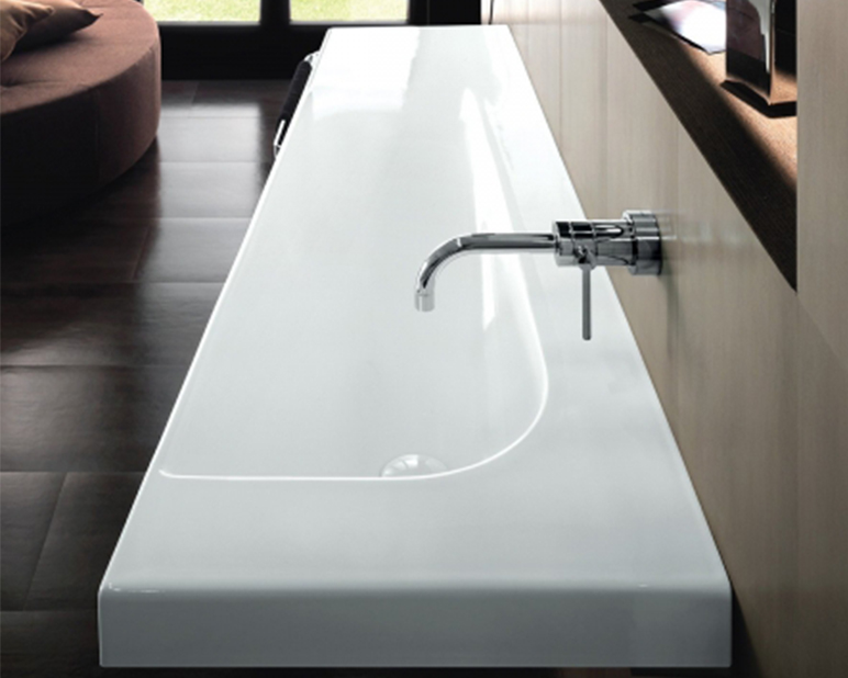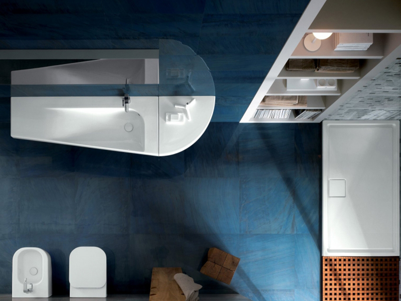 Вироби мають варіації бортів: від вузьких до перехідних в поличку для банних аксесуарів. Колекція GRANDANGOLO також доповнена окремими кутовими поличками.