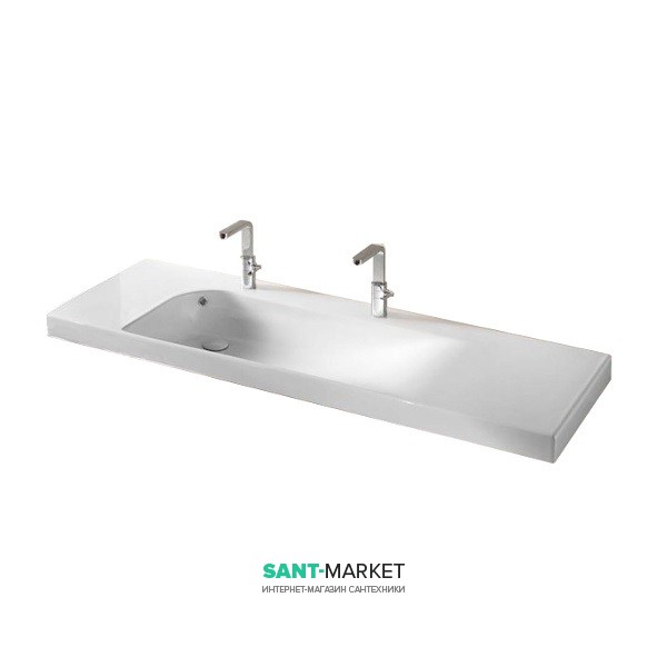 1) Раковина для ванної підвісна Hatria Grandangolo 150х50 см з двома отворами під змішувачі ь білий