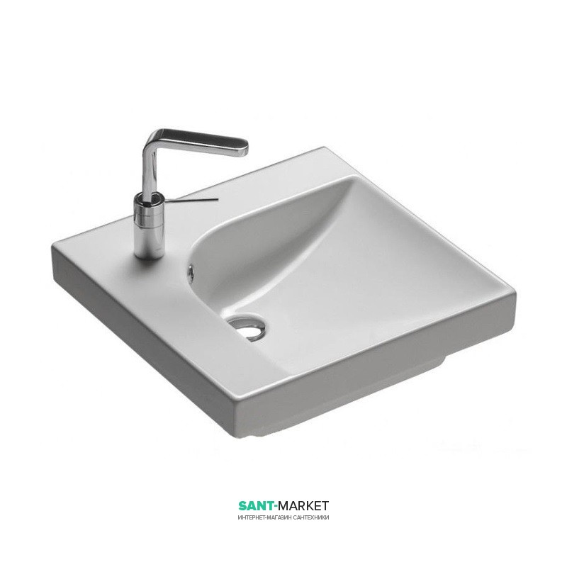 Раковина підвісна HATRIA GRANDANGOLO YXFA01 з 1 отвором для змішувача, чаша справа, розмір 50х50 см, колір білий. Комбінується з керамічними правими і лівими полками Grandangolo 50, вішалками для рушників і сифоном.