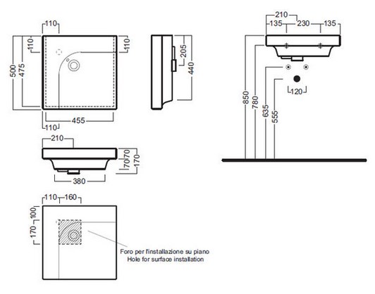 - комбінується з керамічними правими і лівими полками Grandangolo 50, вішалками для рушників і сифоном