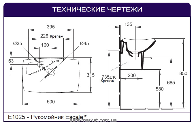Увага! Тримач для рушника не входить у вартість умивальника.
