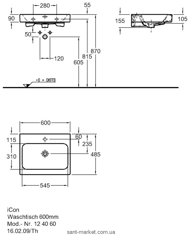 Keramag iCon F124060000 раковина накладна або підвісна для ванної кімнати, з отвором під змішувач та переливом, 600 х 485 мм. Колір білий. Комплектується із шафками арт. F84026 *, F84036 *. Ціна вказана лише за раковину.
