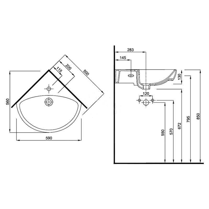 - Для комплектації з п'єдесталом або напівп'єдесталом