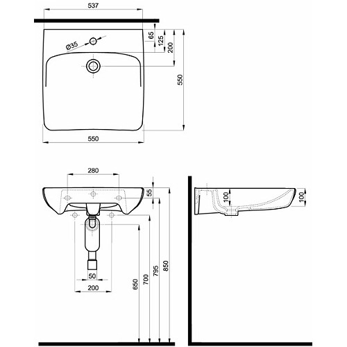 - Для комплектації з п'єдесталом або напівп'єдесталом