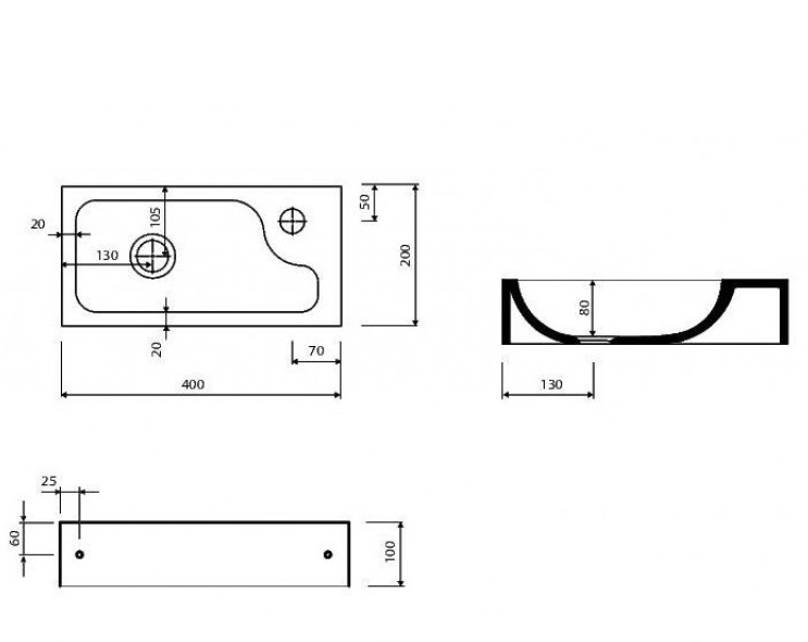0 – без отвору для змішувача