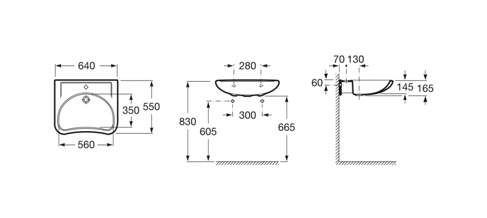 1) Раковина для ванної підвісна медична Roca Access 64х55 з отвором під змішувач кераміка біла