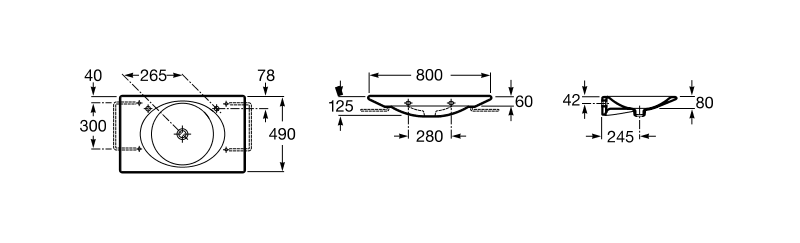 1) Раковина для ванної підвісна / накладна Roca Kalahari 80х49 см кераміка біла