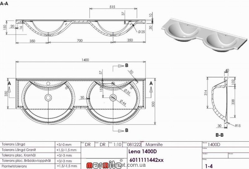Подвійний умивальник Marmite Lena 01111144203 – це геніальність, укладена у простоті. Такий умивальник виглядає як витвір мистецтва, якогось сучасного творця. По обидва боки умивальника розташовані зручні, широкі полички для туалетного приладдя.
