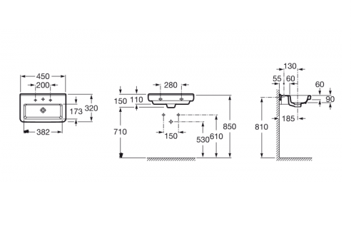 Раковина для ванної підвісна Roca Dama-n Compact 45х32 з одним отвором під змішувач біла A327789000