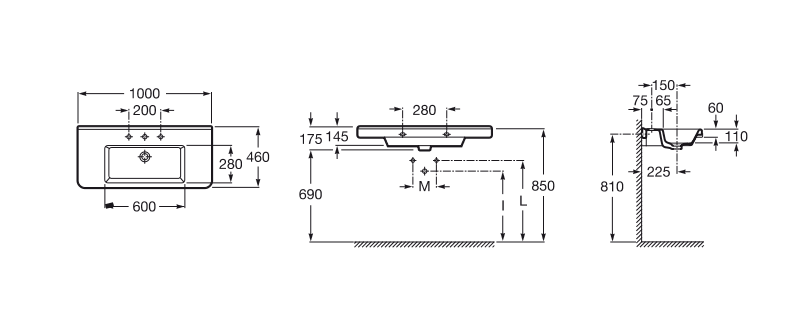 Раковина для ванної підвісна Roca Dama-n 100х46 з одним отвором під змішувач біла A327780000
