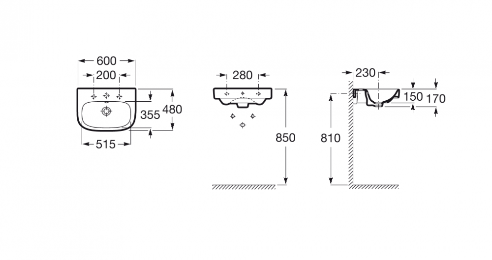 1) Міні-раковина для ванної підвісна Roca Debba 60х48 з одним отвором під змішувач кераміка білий