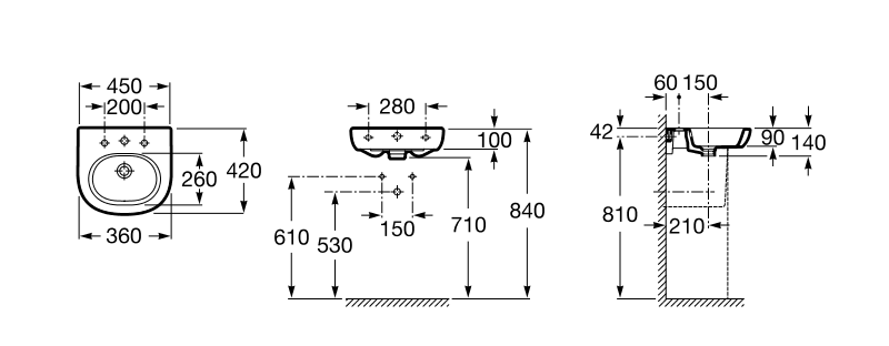 Раковина для ванної підвісна Roca Meridian - N 45 см span > з одним отвором під змішувач біла
