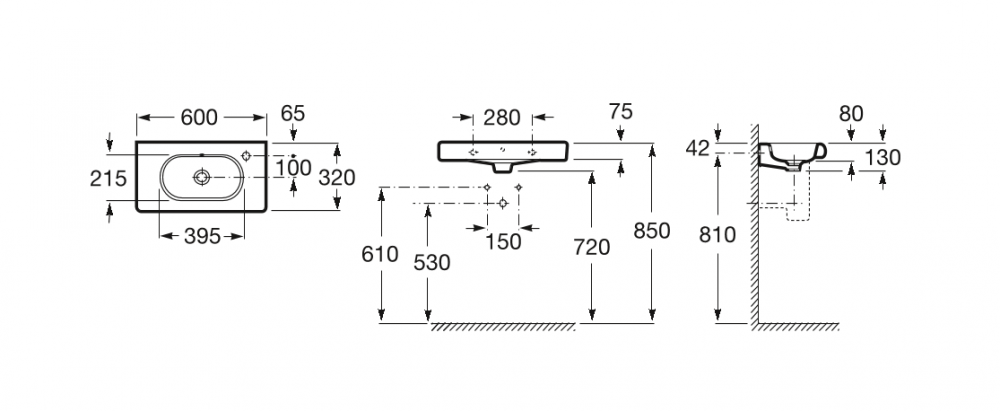 Раковина для ванної підвісна Roca Meridian 60х32 см з отвором під змішувач праворуч кераміка біла