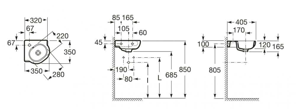 Раковина для ванної підвісна Roca Meridian кутова 35х35 см кераміка біла A32724C000